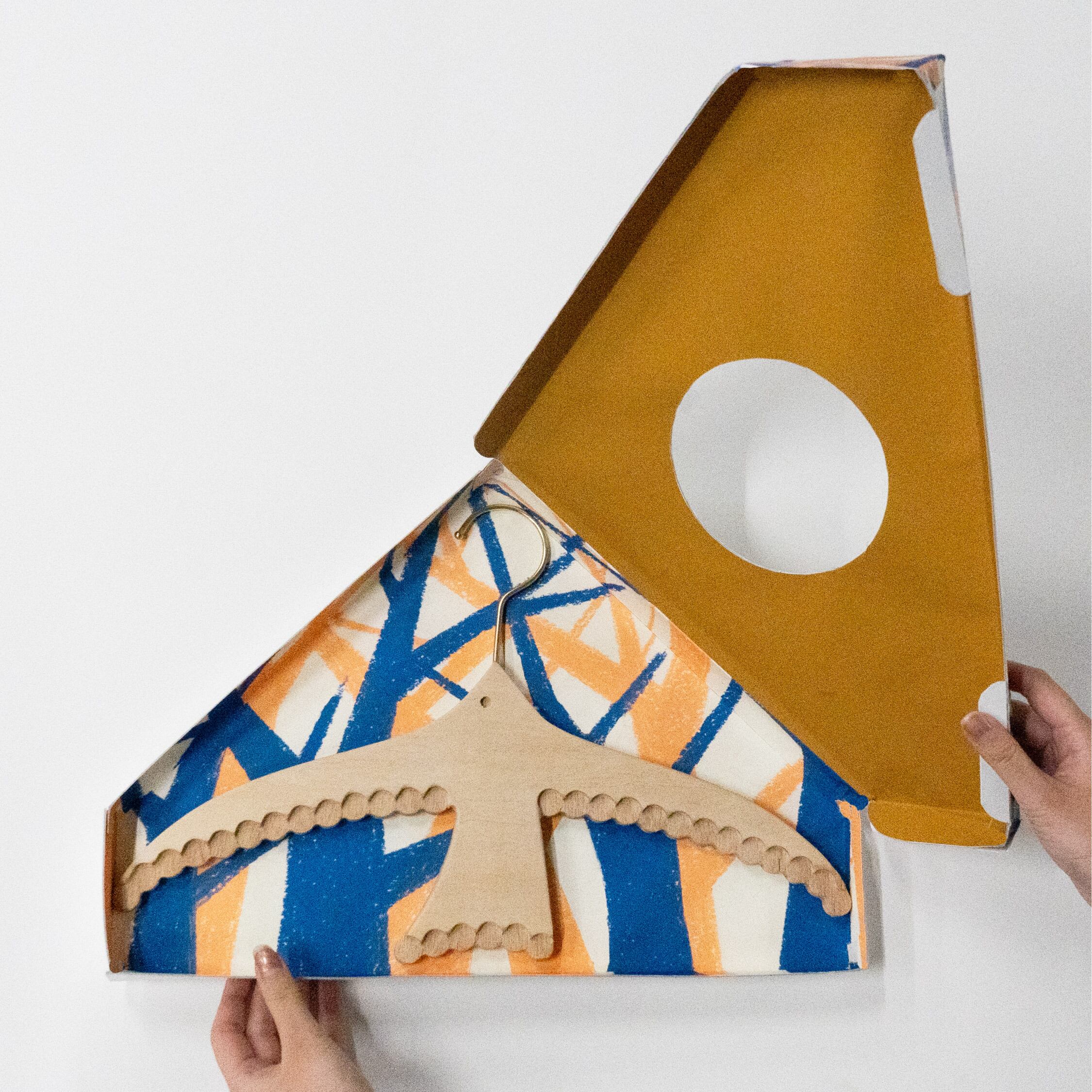 fuku-doriの大人用です。 木でできた温かみのあるハンガーで、どんなお洋服にも合います。 お家の形をしたBOXに入れてお届けします。